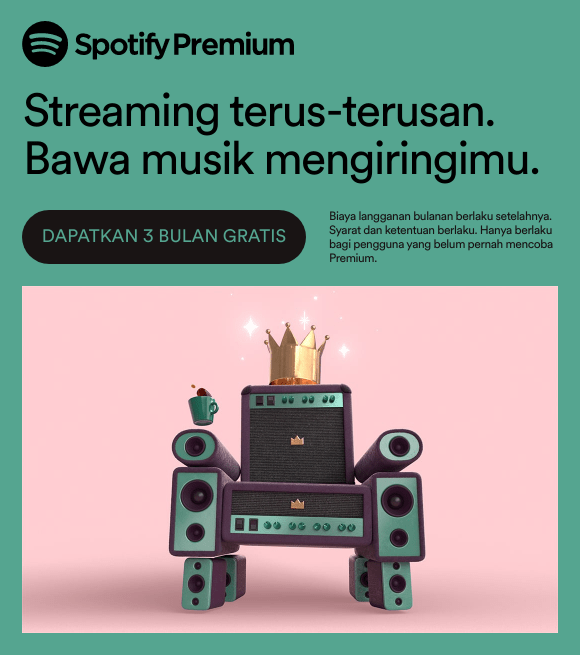 Siap merasakan kekuatan Premium? Download lagu dan podcast favoritmu, dan putar dalam mode offline di mana pun. Plus, pilih dan lewati lagu apa pun tanpa interupsi iklan. Dapatkan 3 bulan sekarang juga, gratis.