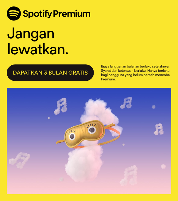 Kesempatanmu untuk mendapatkan 3 bulan Premium gratis tinggal beberapa hari lagi. Pilih lagu, lewati lagu, dan dengarkan bebas iklan di perangkat apa pun. Jangan lewatkan.