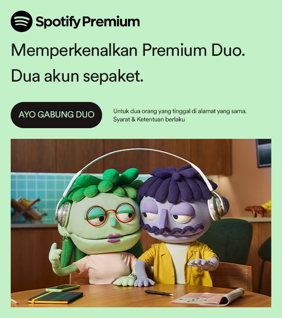 Mendengarkan tanpa iklan dengan Premium Duo: dua akun Premium terpisah, dengan semua manfaat Premium.