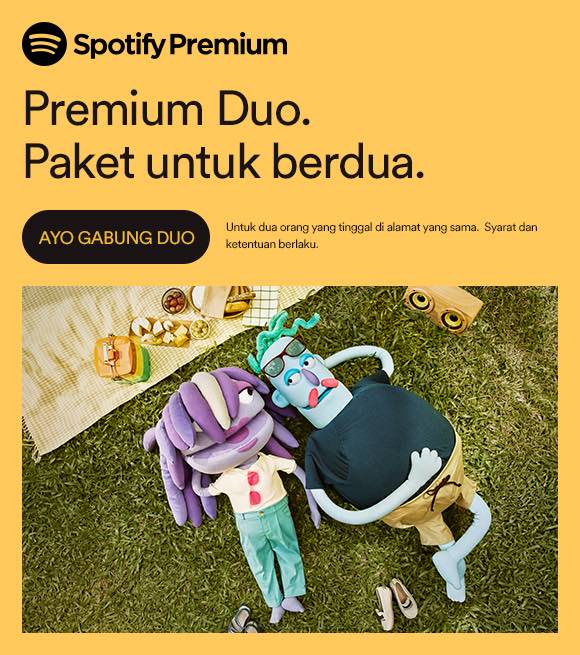 Rp 71.490/bulan setelahnya. Hanya terbuka untuk pengguna yang belum pernah mencoba Premium. Untuk dua orang yang tinggal di alamat yang sama. Syarat dan ketentuan berlaku.